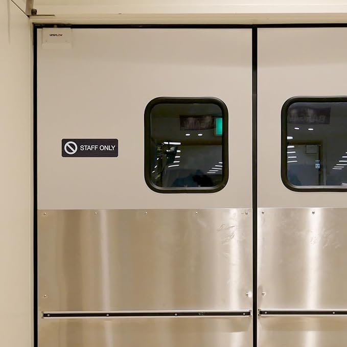 - Includes: One "Staff Only" sign in faux dark wood with adhesive mounting strips.