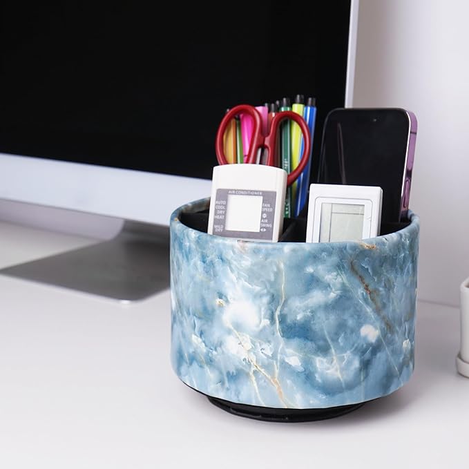 - 360° Revolving Design: You can freely rotate the pen holder steadily left and right,unique spinning base design allows easy access to items from any directions.The non-slip pads on the bottom keep it stay in place when rotating.