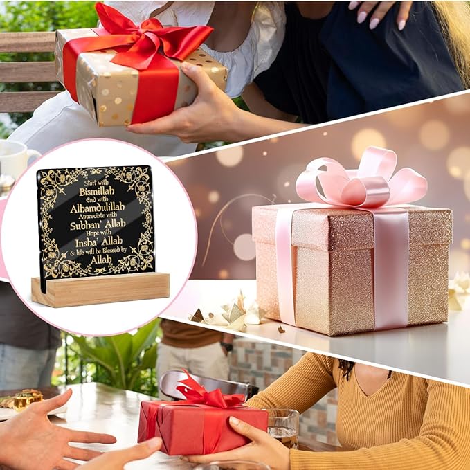 Islamic Acrylic Sign Decor Eid Ramadan Mubarak Table Decor Start and End with Allah Appreciate Hope with Allah Acrylic Plaque Arabic Ramadan Tree Decoration Shelf Cubicle Desktop Art Decoration Black
