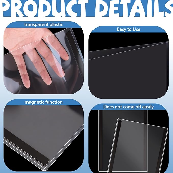 - Package Quantity: You will get 6 pack 8.5'' x 11'' rigid magnetic sign holders, both front and back are transparent, can be fixed on metal surfaces, will not fall off easily, can meet your daily use and replacement needs