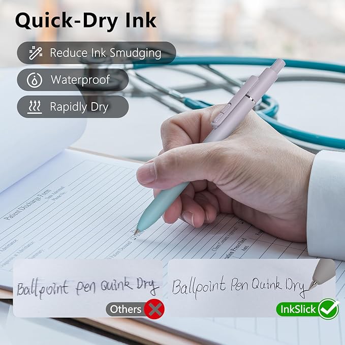 - High-End Series Ballpoint: InkSlick 1.0mm medium point black pens featuring large capacity and quality emulsified ink for a smooth, skip-less writing experience and quicker writing speeds. This reliable and long-lasting pen can help you confidently express your thoughts