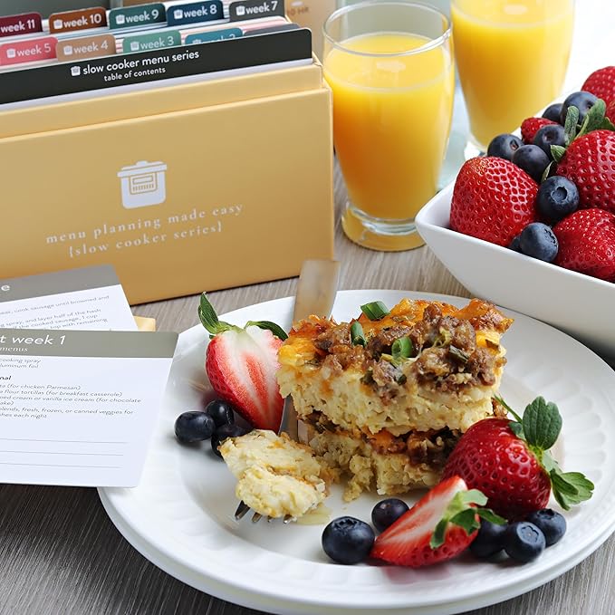 Meal Planner with 72 Photo Recipe Cards (Slow Cooker) - Weekly Menu Planner | Recipe Box | 12 Reusable Grocery Lists | 5 Blank Cards | Card Protectors | Easy Recipe Ideas with Pictures