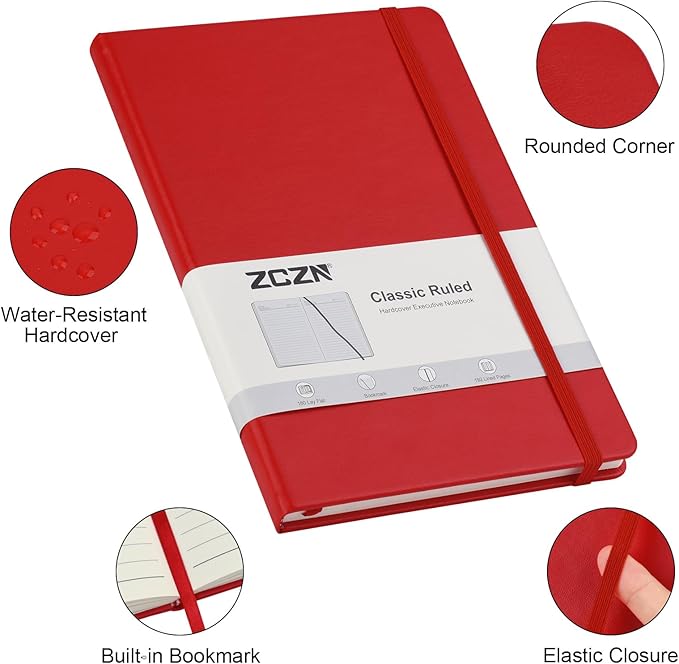 - Effective Design: Each notebook comes with an elastic clousure band, protecting the inner pages and personal privacy, also make the pages of hardcover executive notebooks well organized. One ribbon bookmark helps you locate the content. The lined inner paper make writing more neatly