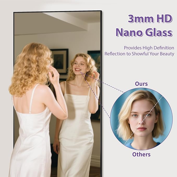 Full Length Mirror, 58"x21" Oversized Floor Mirror Freestanding, Full Body Mirror Floor Standing Mirrors with Stand, Hanging Mounted Mirrors for Bedroom Living Room, Black, Rect Style