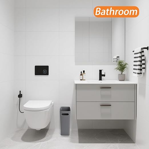 - Slim Rectangular Size: These bathroom wasterbasket measure11 x 5 x 12inch, 2.5 gallon capacity, rectangular slim shape, perfect for narrow limited spaces where larger bins may not fit, such as inside cabinets, under counters, under sinks, next to the toilet or beside a shower or bathtub.