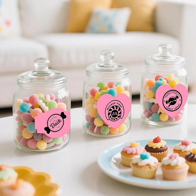 - Pink Heart&Candy Shaped Labels: you will receive 2 rolls of pink customised label stickers, the heart shaped stickers size: 76mm (3 inches) and the candy shaped stickers size: 78*53mm (3x2 inches).Each roll contains 300 labels for a total of 600 labels. This labels can perfectly fit the surface of the item, giving your products a more cute and delicate fashionable feeling,enhancing the overall texture.