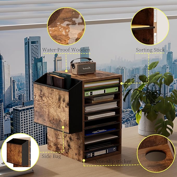 - Durable & Stylish:Dimensions:11.81"x10.4"x16.14". The wooden paper organizer crafted from sturdy, premium particle board.Providing the durability of the product