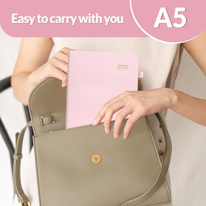 SUNEE 2026 Weekly & Monthly Hardcover Planner 5.5" x 8.3" - 12 Month (January 2026 - December 2026), Small Hardcover Planner, Pocket, Notes, 100 GSM Paper, Pink