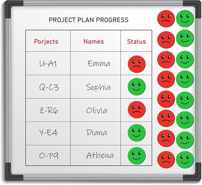 - Can be used to mark staff in/out in the office, as well as indicate status on whiteboards
