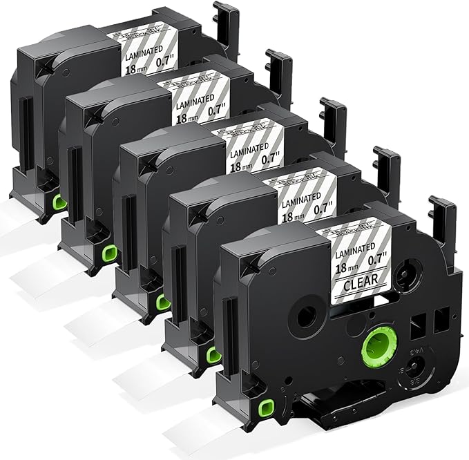 Labelife Label Maker Tape 18mm Clear TZe-141 Compatible with Brother P Touch TZe TZ Tape 18mm 0.7 Laminated Clear TZe141 TZ-141 3/4 Inch Label for Ptouch PTD600 PTD400AD PT1880, 5-Pack