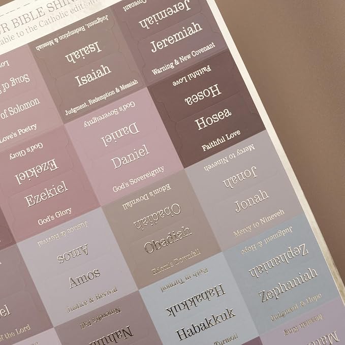 - Unique: Bible tabs with Summary Descriptions and Gold Foil Embossed Lettering.Catholic bible tabs 73 books,This is the ideal christian gi.ft. These unique Bible index tabs make a great gi.ft for your girlfriend, mum, kids, or anyone who loves beautiful things in life.