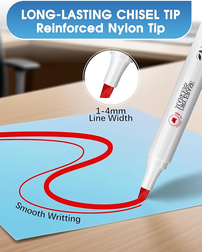 - 【Smooth, Bold & Fine Lines】 The dual-tip chisel design lets you switch between thin (1-2mm) precision lines and thick (4-5mm) bold strokes – ideal for diagrams, charts, and eye-catching headers.