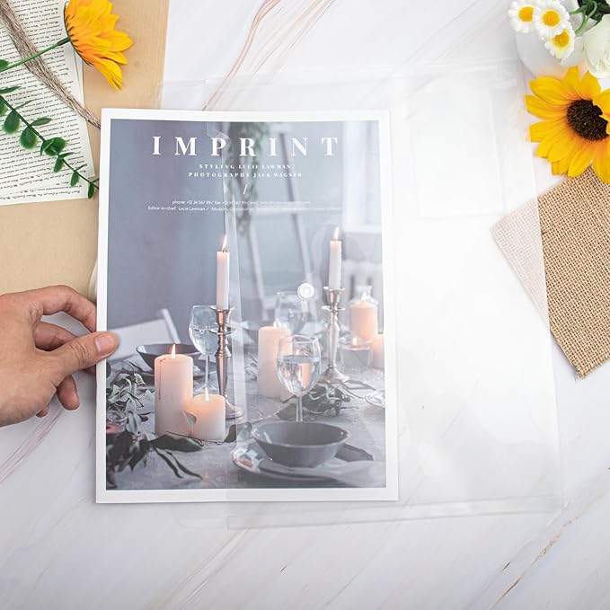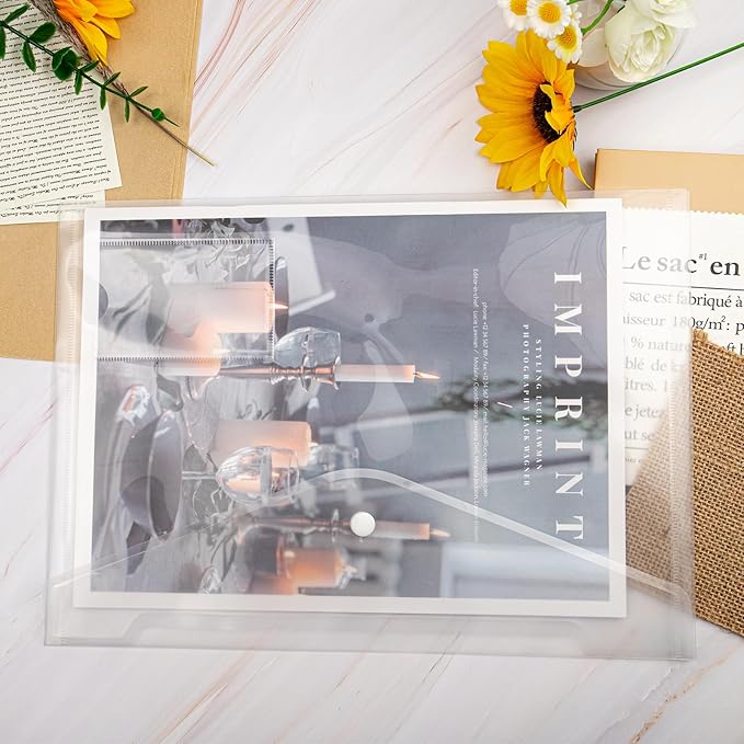 - Multipurpose File Folders: 50pcs File bags for school use, to hold papers, handouts, notes, stationery etc., for office use, to keep brief report, project document, finance statement, meeting material etc., for home use, to store bills, receipts, appliance instructions, photos etc., for craft items, craft papers, stickers, embellishments, for storing travelling items, makeup items and so on.