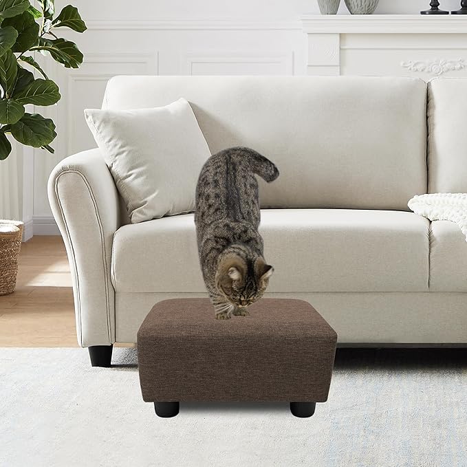 CAROLMADE Small Foot Stool Ottoman Footstool with Legs Under Desk Footrest for Living Room Bedroom and Office,Linen-Brown