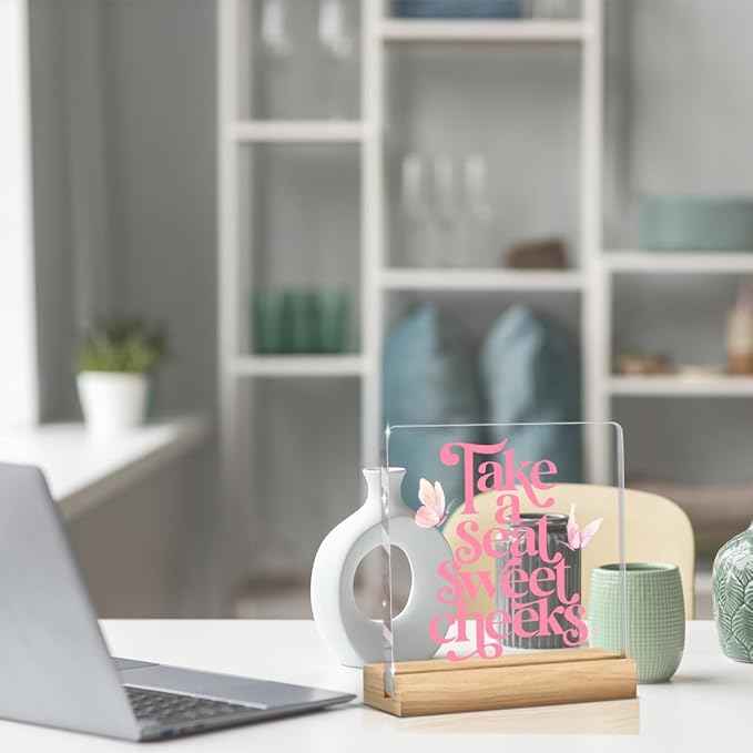 Funny Pink Bathroom Decor Preppy Take A Seat Sweet Cheeks Sign Bathroom Toilet Table Acrylic Sign Plaque Table Decorations for Home Toilet Washroom