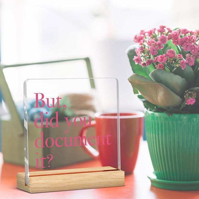 Pink Desk Decor, But Did You Document It, Funny Pink Office Gifts Workplace Sign for Coworker Friend Acrylic Sign Plaque Table Decorations for Home Bedroom Living Room Toilet Table
