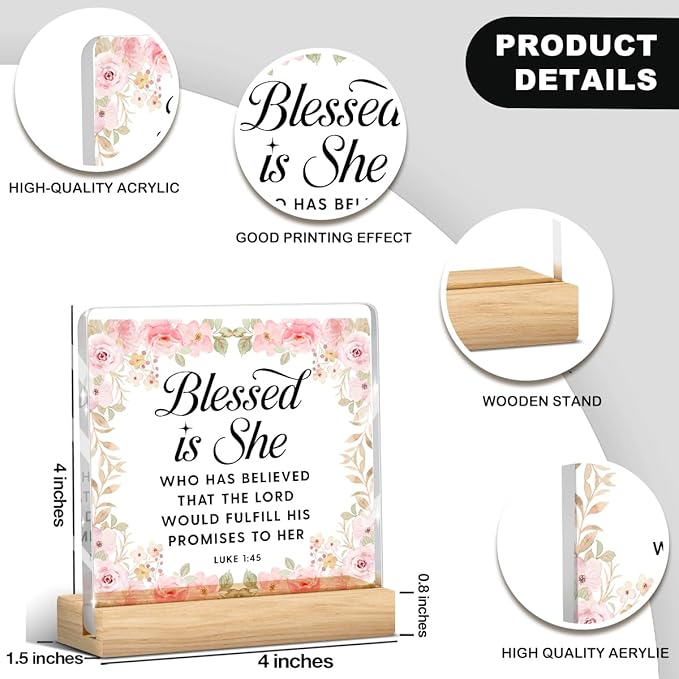Pink Religious Gifts Christian Decor Inspirational Bible Verses Sign Scripture Acrylic Sign Plaque Table Decorations for Home Office Bedroom