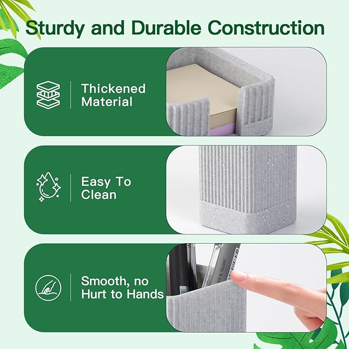 - 3-IN-1 SMART STORAGE SOLUTION- Deep Pen Holder (fits 20+ pens, 3.9" tall to prevent tipping);Sticky Notes Tray (optimized for 3"x3" standard memos); Magnetic Paperclip Box (with inner ridge to prevent spills).Smooth rounded edges and neutral color complement modern office aesthetics.