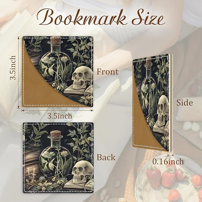 - Cool Gothic Art Design: Enhance your reading adventure with leather corner bookmarks adorned with goth skulls books art. It's a practical yet cute accessory that secures your page while sparking wonder and excitement, making it a perfect gift for book lovers.