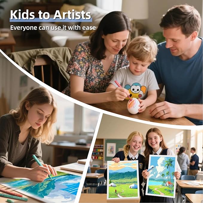 - 【Portable Creative Studio】:Custom 5-layer acrylic case + accessory envelope; Enhanced protective box reduces shipping damage risks; Quick-access design with color-coded caps; Perfect for indoor/outdoor painting; classroom projects or holiday decorations