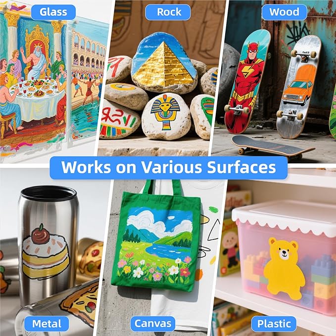 - 【Professional Performance】: Water-based ink certified ASTM D4236&EN-71;Non-Toxic,Waterproof and fade-resistant after drying; Opaque coverage even on dark materials; Suitable for artists; students and DIY crafts