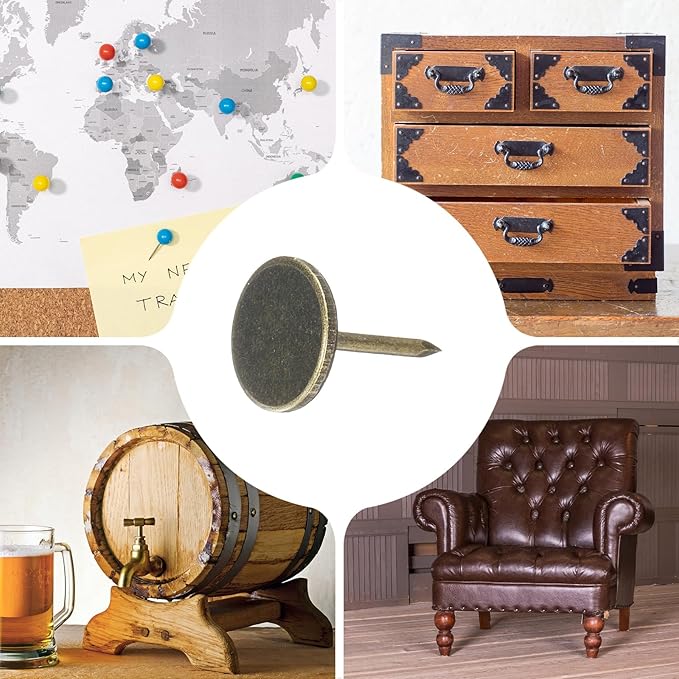 - [Wide Application] - The thumb tacks are both practical and decorative and can be used in a variety of furniture and DIY craft projects. Widely used to decorate furniture such as upholstery, sofas, headboards, chairs, benches, stools, wooden boxes, and can also be used to fix memos, pictures, maps and other lightweight items on cork boards
