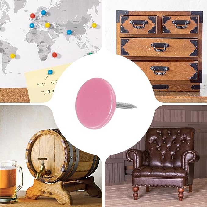 - [Wide Application] - The thumb tacks are both practical and decorative and can be used in a variety of furniture and DIY craft projects. Widely used to decorate furniture such as upholstery, sofas, headboards, chairs, benches, stools, wooden boxes, and can also be used to fix memos, pictures, maps and other lightweight items on cork boards