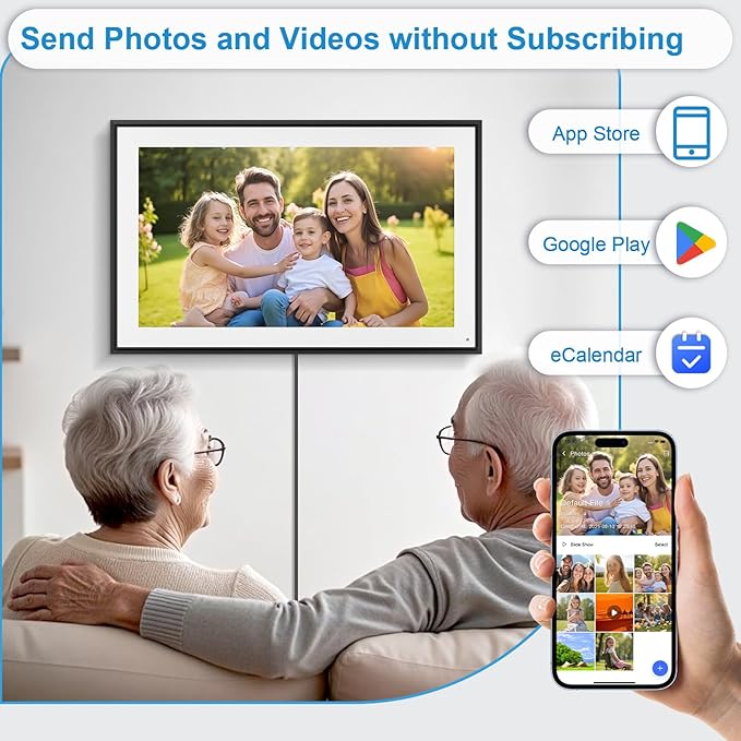 - 【Digital Photo Frame Feature】 When the calendar is not in use, it can be turned into a digital picture frame. Use the free app to transfer pictures or videos to the calendar and share good moments with your family members which makes it a great gift for Mother's Day, Father's Day, Christmas, birthdays, weddings, New Year, Thanksgiving,ect.