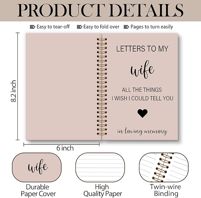 Memorial Gifts for Loss of Wife Grief Notebook Journal, Letters to My Wife in Heaven Spiral Notebook, Sympathy Notebooks Gifts for Loss of Wife Men, In Loving Memory Sympathy Gifts, 6x8.2In