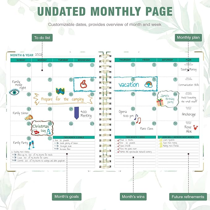 Ospelelf Undated Spiral Bound Planner Daily, Weekly and Monthly Planner 2025-2026, Work Planners 12 Month 8.5 x 11
