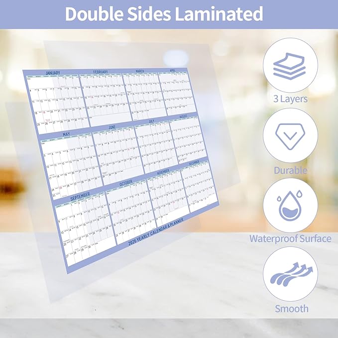 - Wall Calendar Dry Erase: Yearly large wall calendar 2026 covers 12 months from January 2026 to December 2026 for year-round planning. Wall calendar 2026 akes all important events, birthdays, appointments clearly visible on one page.