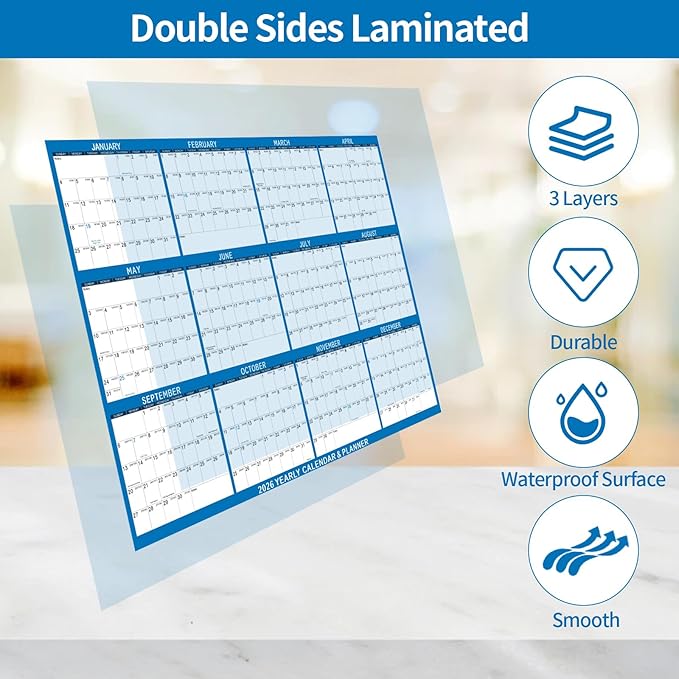 - Wall Calendar Dry Erase: Yearly large wall calendar 2026 covers 12 months from January 2026 to December 2026 for year-round planning. Wall calendar 2026 akes all important events, birthdays, appointments clearly visible on one page.