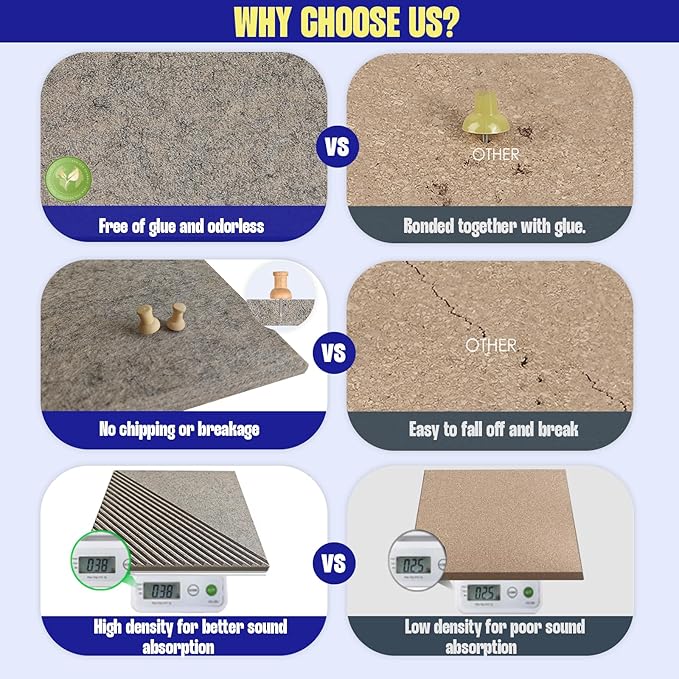 - Sound Absorption: The dense felt cork board helps absorb sound, making it an excellent choice for reducing noise and enhancing acoustics in your office, studio, or home office space