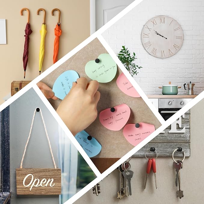 - TRACELESS THUMBTACKS: The holes made by the Hang pictures on wall without nails are very small and almost leave no marks, which can avoid damaging the walls. The picture hangers enable you to create beautiful displays without leaving a lasting impact. Please consider the hardness of the wall before purchasing. Our wall hooks for hanging may not be suitable for very hard or fragile materials, so be sure to evaluate the wall type in your home for the best results.