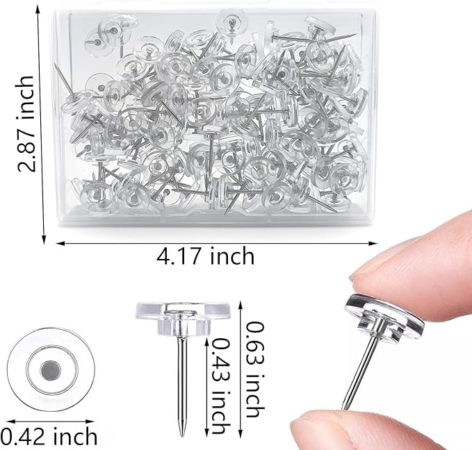 - Convenient Storage Box - This set includes 150 clear thumbtacks, all neatly stored in a compact, transparent box. The reusable storage box keeps your thumbtacks organized, ensuring they are easy to find and ready for use, eliminating the hassle of lost pins.