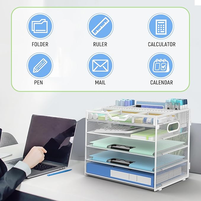 - Low-Maintenance, Easy to Clean-The smooth powder-coated surface of this professional office desk organizer resists dust and stains—simply wipe with a damp cloth for spotless upkeep. Ideal for busy offices, classrooms, or home workspaces where desk organization and hygiene matter most. The perfect paper organizer for desk among your essential office supplies