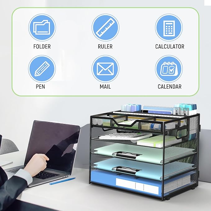 - Low-Maintenance, Easy to Clean-The smooth powder-coated surface of this professional office desk organizer resists dust and stains—simply wipe with a damp cloth for spotless upkeep. Ideal for busy offices, classrooms, or home workspaces where desk organization and hygiene matter most. The perfect paper organizer for desk among your essential office supplies