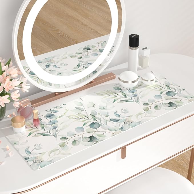 QIYI Large Mouse Pad, Cute Green Leaves Desk Mat for Desktop, Women Girls Office Décor Desk Accessories, PU Leather Waterproof Gaming Mousepad, Eucalyptus Leaf Desk Pad Computer Mat, 31.5" x 11.8"