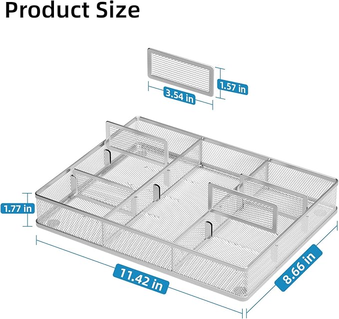 - Sturdy and Durable: Made of strong wire mesh with a powder-coated finish that is smooth, corrosion-resistant, and built to last. Non-slip feet keep the organizer stable and in place.This practical desk drawer organizer also makes a perfect gift for your family and friends.
