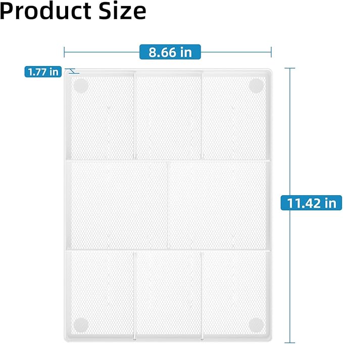 - Sturdy and Durable: Made of strong wire mesh with a powder-coated finish that is smooth, corrosion-resistant, and built to last. Non-slip feet keep the organizer stable and in place.This practical desk drawer organizer also makes a perfect gift for your family and friends.
