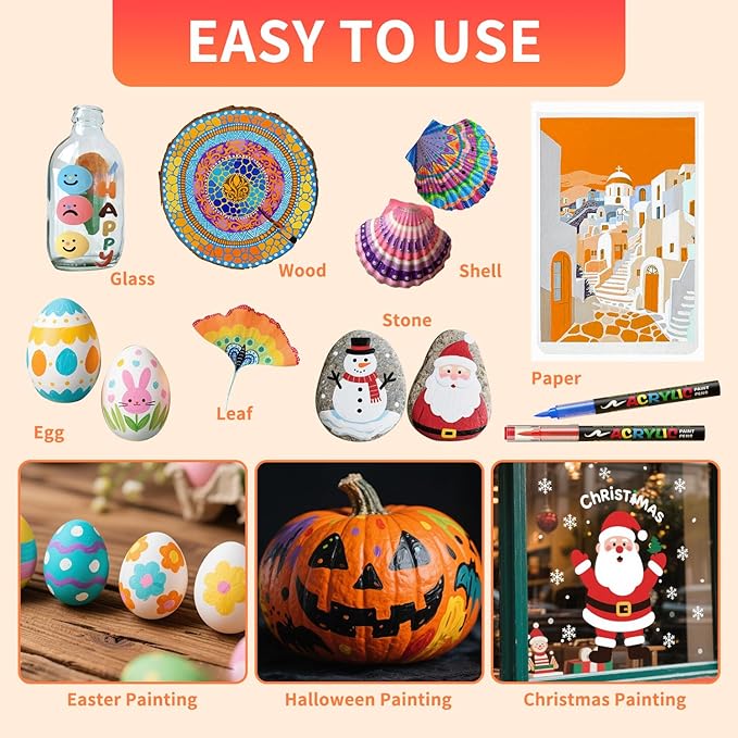 - Portable & Organized Packaging: Individually wrapped in a 5-layer pull-out case, these acrylic paint pens stay protected and organized. They’re travel-ready and designed for on-the-go use, without compromising ink longevity or color vibrancy