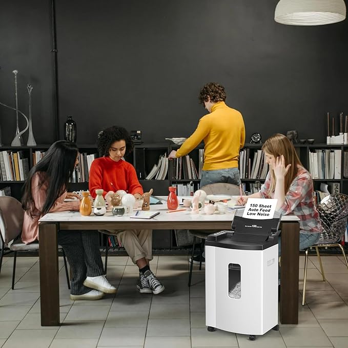 - 【Auto-Feed 150 Sheets】Effortlessly shred up to 150 sheets automatically with hands-free operation—perfect for bulk document disposal. Simply load the stack and let the machine do the work, saving time and effort.
