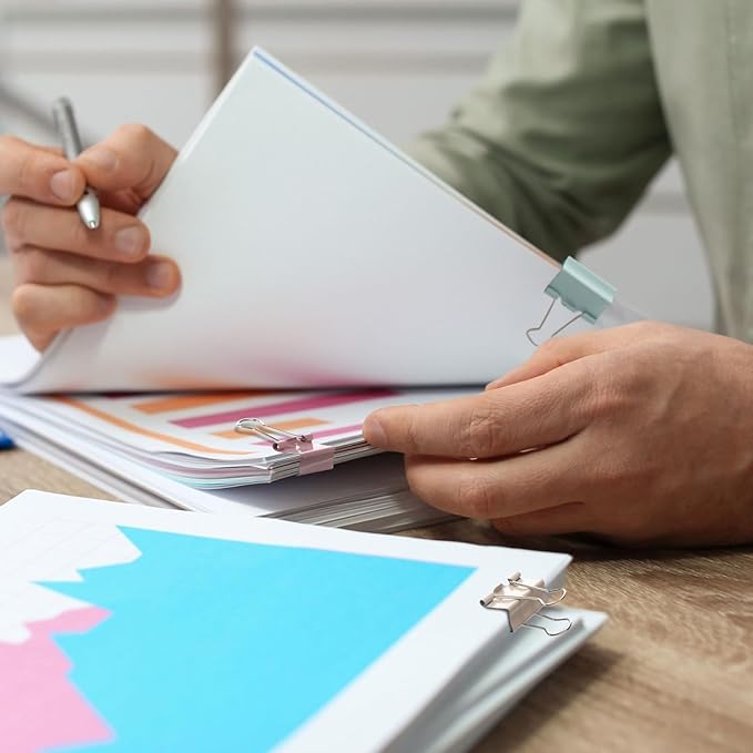 - Repeatable and Easy Operating: these mini paper binder clips help hold large stacks of loose paper together, and they are reusable, you only need a light pinch to clip the paper without too many efforts