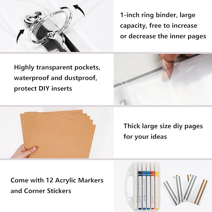 - Scrapbook With Plastic Sleeves: Crystal-clear PVC resists dust, moisture & fingerprints to prevent fading/wear. Durable material withstands repeated use—perfect for long-term preservation & content updates