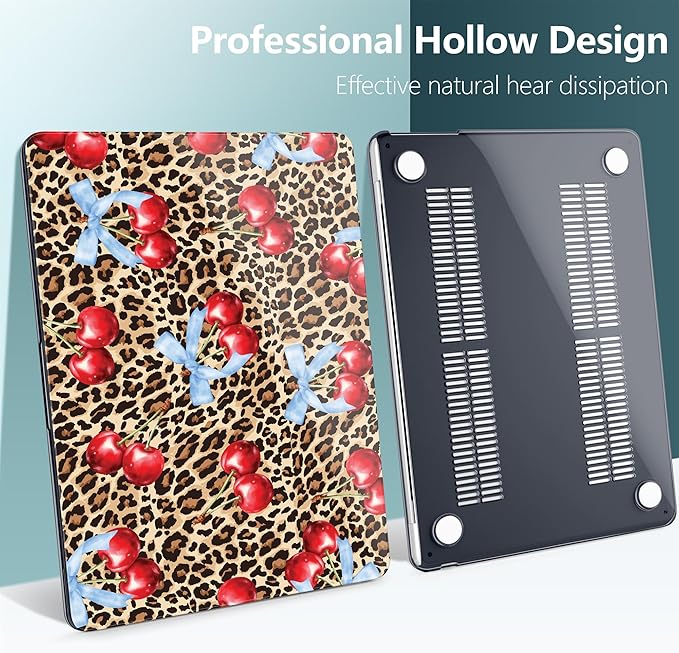 DONGKE Compatible with M4 MacBook Air 15 inch Case 2025-2023 A3241 A3114 A2941 M3 M2 Retina Display Touch ID, Plastic Hard Case & Keyboard Skin for MacBook Air 15" - Leopard Cherry
