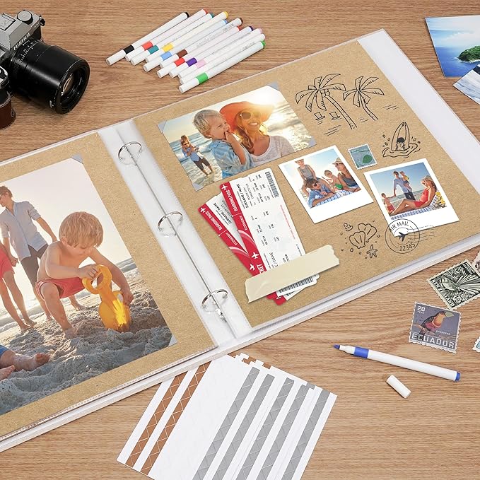 - 3-Ring Design: 3-ring photo album features flexible 1-inch metal rings for easy page editing and high-capacity storage. Smooth ring design ensures seamless page-turning and enhanced usability