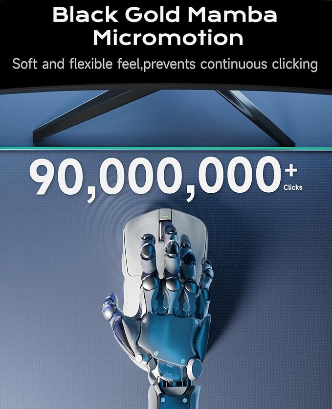 - Black Gold Mamba Micro Motion: uses a micro motion that feels hard, with a clear click as well as rebound speed, and a long click life of 90000000+ clicks, this wireless gaming mouse is suitable for shooter gamers.