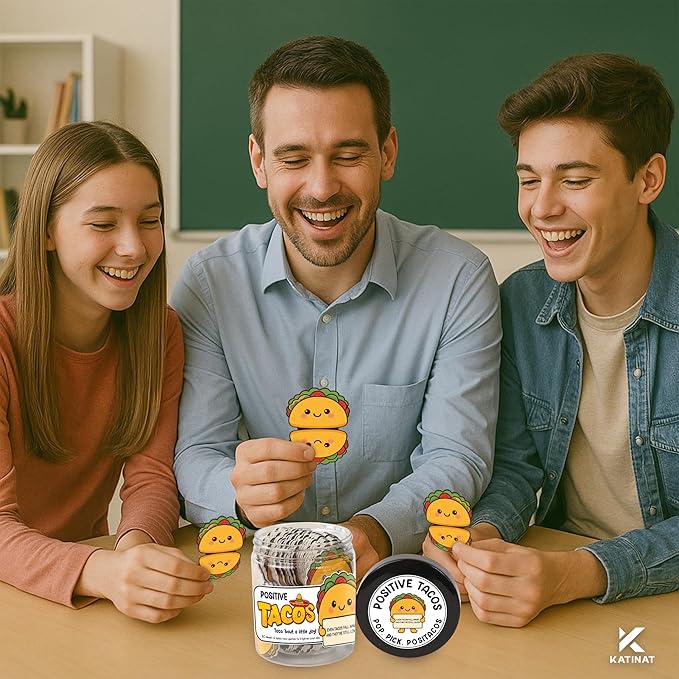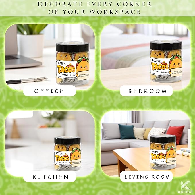 - ๐ฎ Affirmations with a Crunchy Twist โ This Positive Taco Jar features 60 taco-shaped cards packed with uplifting quotes, clever wordplay, and feel-good encouragement. A must-have emotional support taco thatโs flavorful, funny, and full of heart.