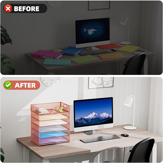 - 【MULTI-PURPOSE ORGANIZER】6-tier layered design and large capacity make the paper organizer become an ideal choice for managing all kinds of letter-size letters, paper, books, bills, etc. Let you quickly identify the contents of each compartment super easy