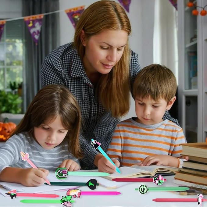 - 【 Halloween Pens 】- This Halloween pen comes in pink and green tones, with various shades of pink and green. It is decorated with a princess and witch Halloween pen clip, perfectly highlighting the theme of Halloween and effortlessly adding to the festive atmosphere.